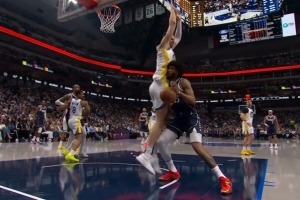 GIF-波尔津吉斯篮下被巴格利撞了一下
