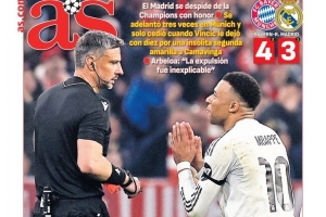 西班牙媒体《阿斯报》最新封面出炉,主标题为“直到裁判决定一切”。