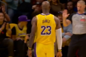 GIF-詹姆斯背打强碾得分向裁判泰勒·福特抱怨 后者摊手