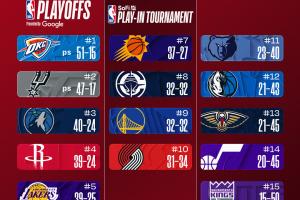 今日的NBA常规赛已全部结束,小吧带你了解各队排名变化: